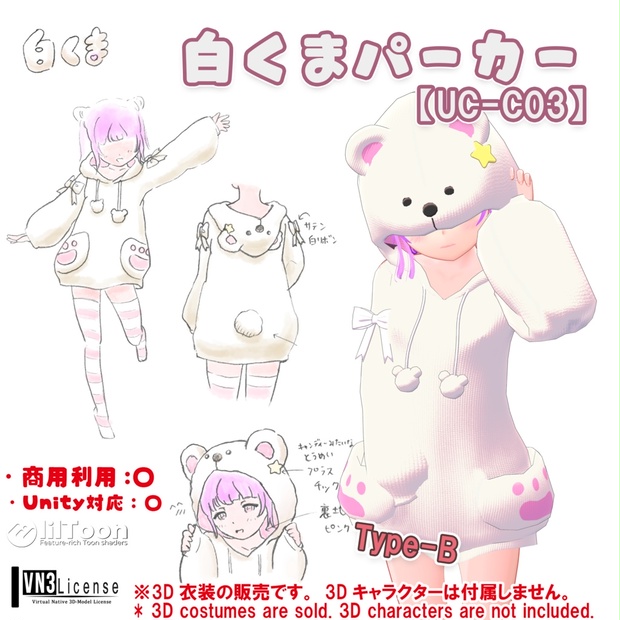 フードを外しているタイプ(Type-A)と、フードをかぶるタイプ(Type-B)があります。