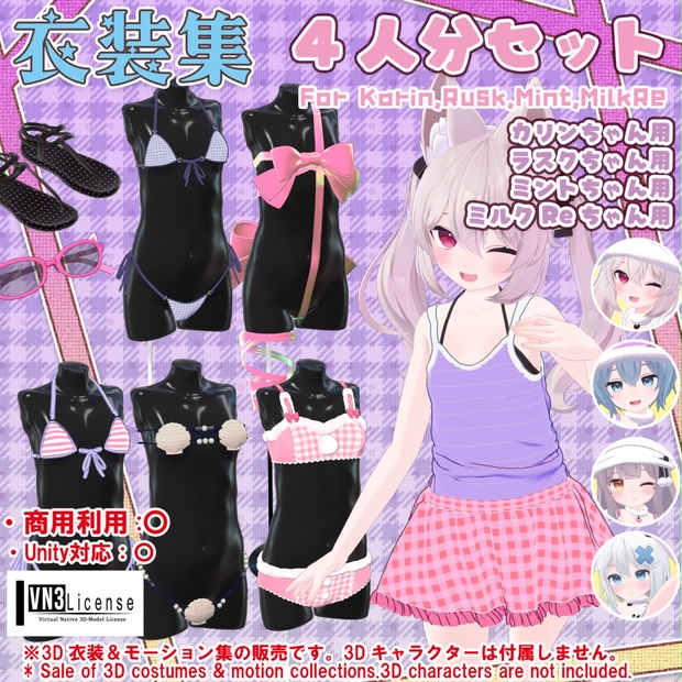 各3Dモデル専用の衣装・モーションをまとめた商品ページです